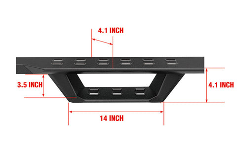 Looking for a new way to upgrade your Truck or SUV? These black R Series Drop Down nerf bars are just what you need! With a weight capacity of 400 lbs, they’re the perfect combination of style and function. They're designed to fit your Truck or SUV perfectly, with easy install instructions and hardware included.
